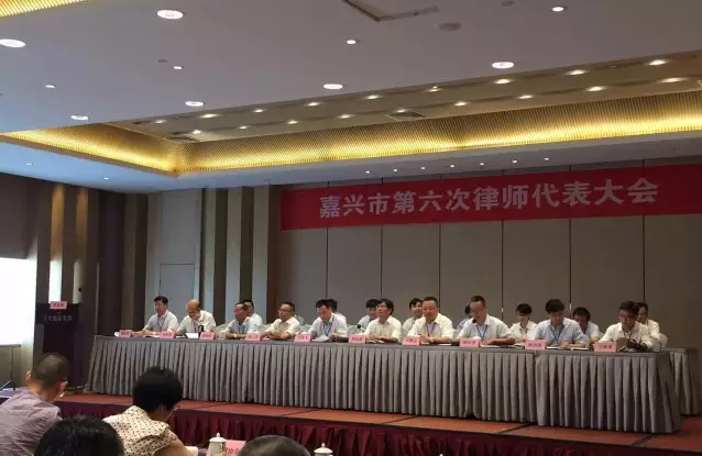 2016年8月13日,嘉兴市第六次律师代表大会在嘉兴市沙龙宾馆召开。嘉兴市司法局副局长、律师协会党委书记王林飞,浙江省律师协会会长郑金都,浙江省律师协会秘书长陈三联等领导到会。嘉兴市律师协会党委委员、副会长、本所主任姚武强律师主持大会。