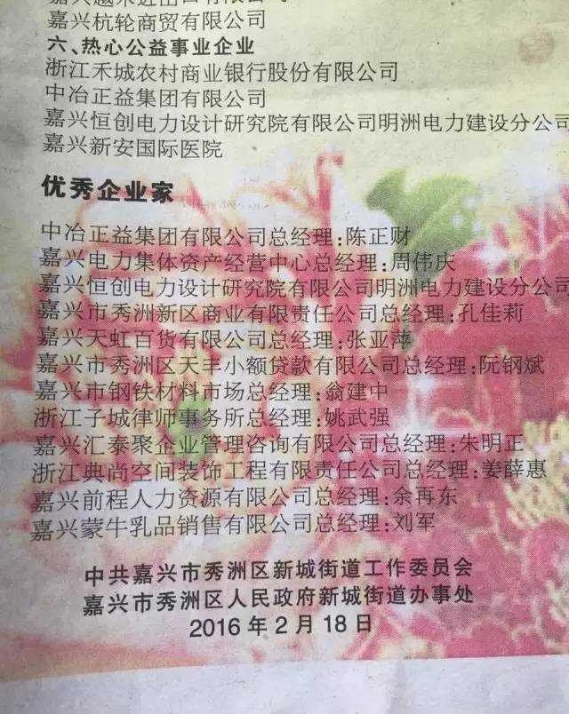 本所自2008年搬迁至秀洲区新城街道后,扎根街道。连续多年荣获街道“服务业优秀企业”、“服务业明星企业”“纳税先进企业“等诸多荣誉,成为新城街道服务业领军企业。