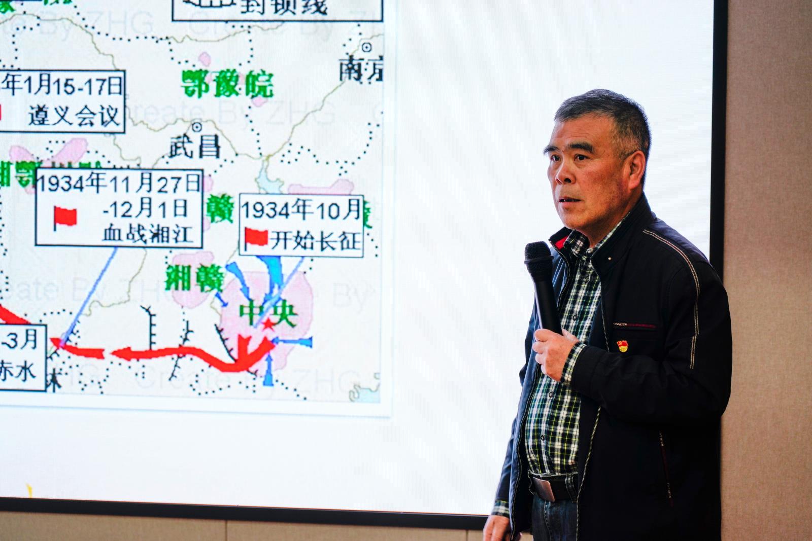 4月19日晚,本所召开党史学习教育周一夜学专题讲座,邀请原秀洲区委组织部副部长、老干部局局长俞永平同志为我们讲述红军长征中的故事,本所共产党员、民主党派成员、共青团员参加讲座。